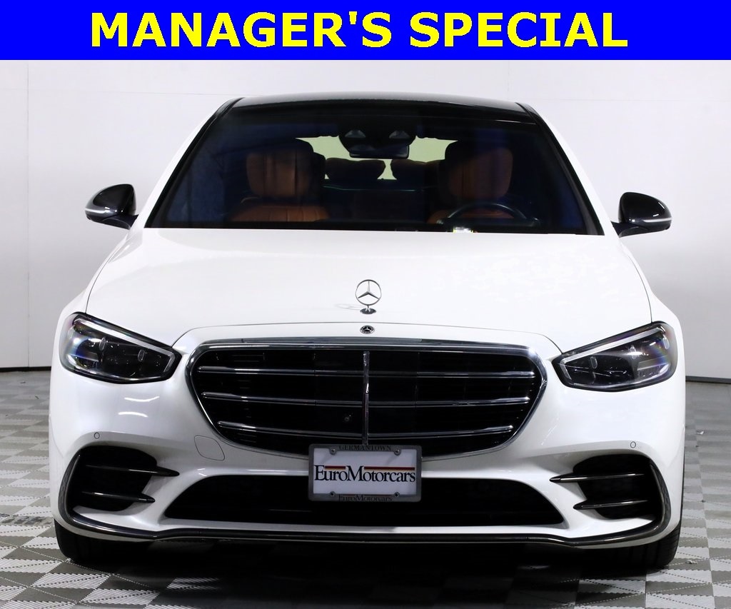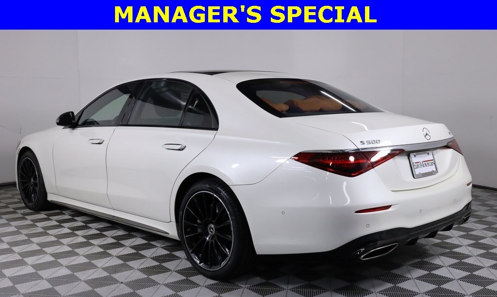 2023 Mercedes-Benz S-Class S 500 4MATIC® MANAGER'S SPECIAL!, 4MATIC®, Sienna Brown/Black w/Leather Upholstery, Active Ambient Lighting, Alloy wheels, AMG® Line Exterior (772), Apple CarPlay®/Android Auto®, Black Headliner, Exterior Parking Camera Rear, Front ENERGIZING Package, Heated Front Armrests, Heated Rear Armrests, Heated Steering Wheel, Memory Rear Seats, Navigation System, Night Package, Panorama Sunroof, Power Rear Seats, Rear Seat Heating, Ventilated Rear Seats, Warmth & Comfort Package, Wheels: 20" AMG® Multi Spoke Painted w/Gloss Black. MANUFAKTUR Diamond White Certification Program Details: Mercedes-Benz Certified Pre-Owned Details: * Includes Trip Interruption Reimbursement * Roadside Assistance * Warranty Deductible: $0 * 164 Point Inspection * Limited Warranty: 12 Month/Unlimited Mile beginning after new car warranty expires or from certified purchase date * Transferable Warranty * Vehicle History Certified. 4MATIC®