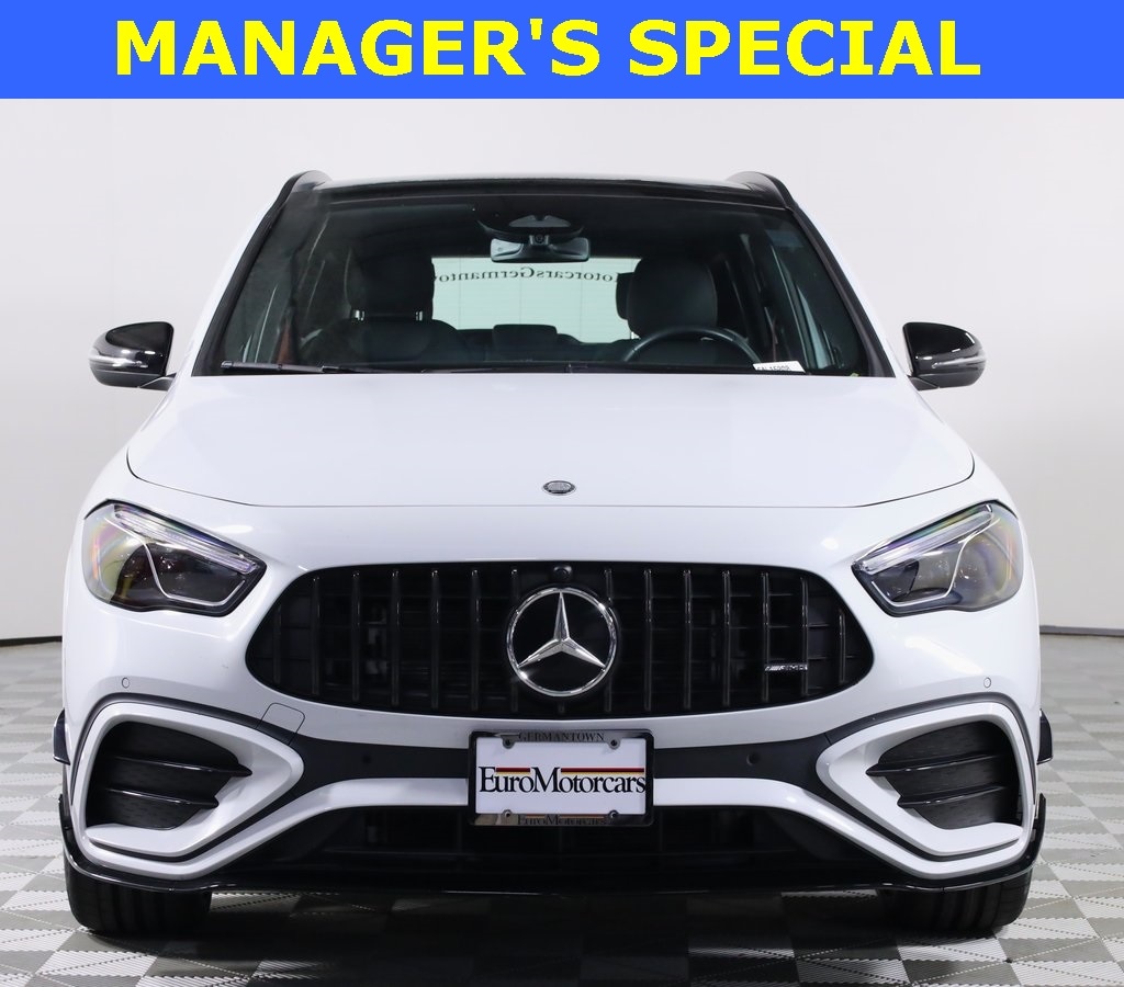 2024 Mercedes-Benz GLA GLA 35 AMG 4MATIC® MANAGER'S SPECIAL!, Lease Available, Panorama Sunroof, 2.0L I4 Turbocharged, Active LED Headlamps, Alloy wheels, AMG® Aerodynamic Package, AMG® Aerodynamic Package (B26), AMG® Illuminated Door Sills, AMG® Night Package Plus, AMG® Performance Steering Wheel in Nappa/Microfiber, Augmented Video for Navigation, Bumpers: body-color, Exclusive Package, Exterior Parking Camera Rear, Front Splitter & Trim in High-Gloss Black, Heated door mirrors, Heated front seats, Heated Steering Wheel, MB Navigation, Power door mirrors, Power Liftgate, Power passenger seat, Split folding rear seat, Spoiler, Traffic Sign Assist, Wheels: 20" AMG® Twin 5-Spoke Matte Black. Digital White Metallic 4MATIC®