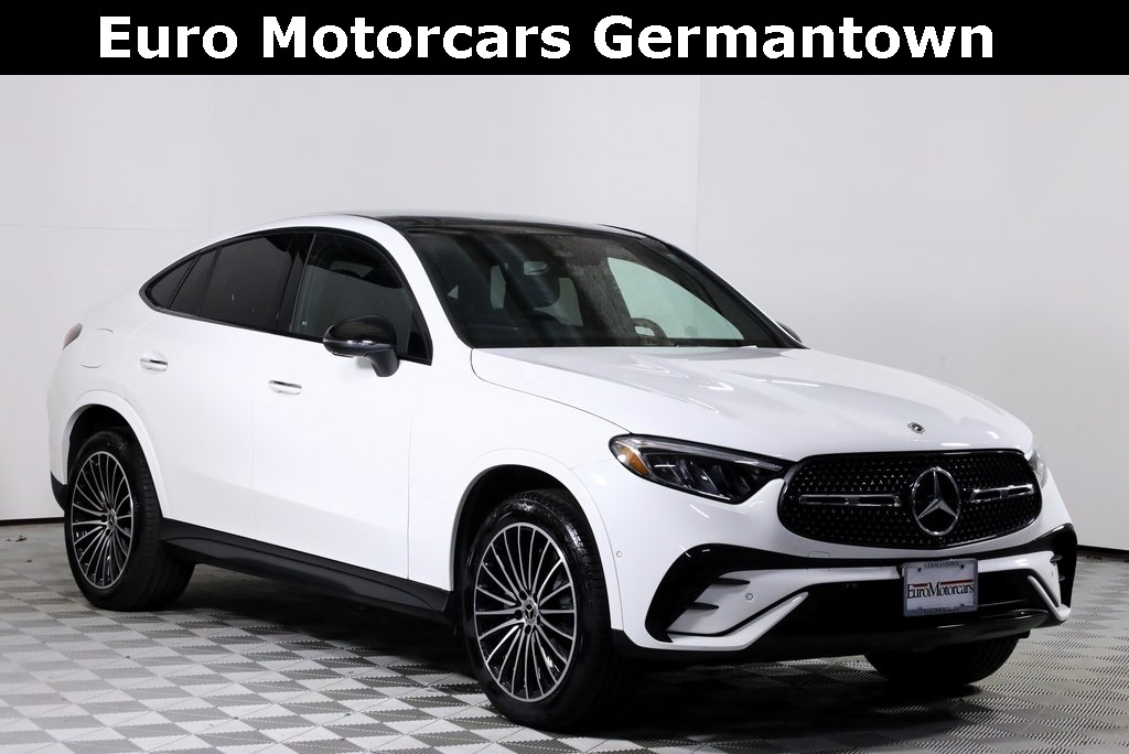 2025 Mercedes-Benz GLC GLC 300 Coupe 4MATIC® 1.99% SPECIAL FINANCING, Lease Available, Surround View Camera, Illuminated Door Sills, 11.9" Center Touchscreen Display, 16-Way Power Front Seats w/Memory & Lumbar, Alloy wheels, AMG® Line, AMG® Line Body Styling, AMG® Line Exterior, AMG® Line Floor Mats, AMG® Line Interior, Animated LED Logo Projector, Black Fabric Headliner, Bumpers: body-color, Exterior Parking Camera Rear, Flat-Bottom Multifunction Sport Steering Wheel, Glass Sunroof, Heated door mirrors, Heated Front Bucket Seats, High-Gloss Black Elements, Navigation system: MB Navigation, Night Package, Perforated Brake Discs, Power door mirrors, Power Liftgate, Power passenger seat, SiriusXM Satellite Radio, Split folding rear seat, Wheels: 8.5J x 20" Fr & 9.5J x 20" Rr AMG® Multispk. Polar White 4MATIC®