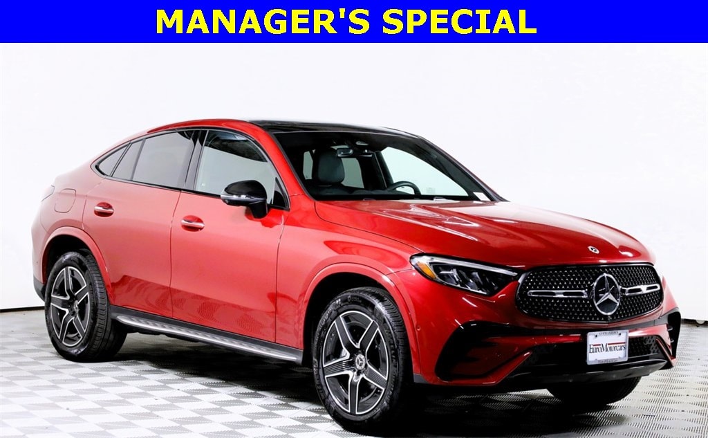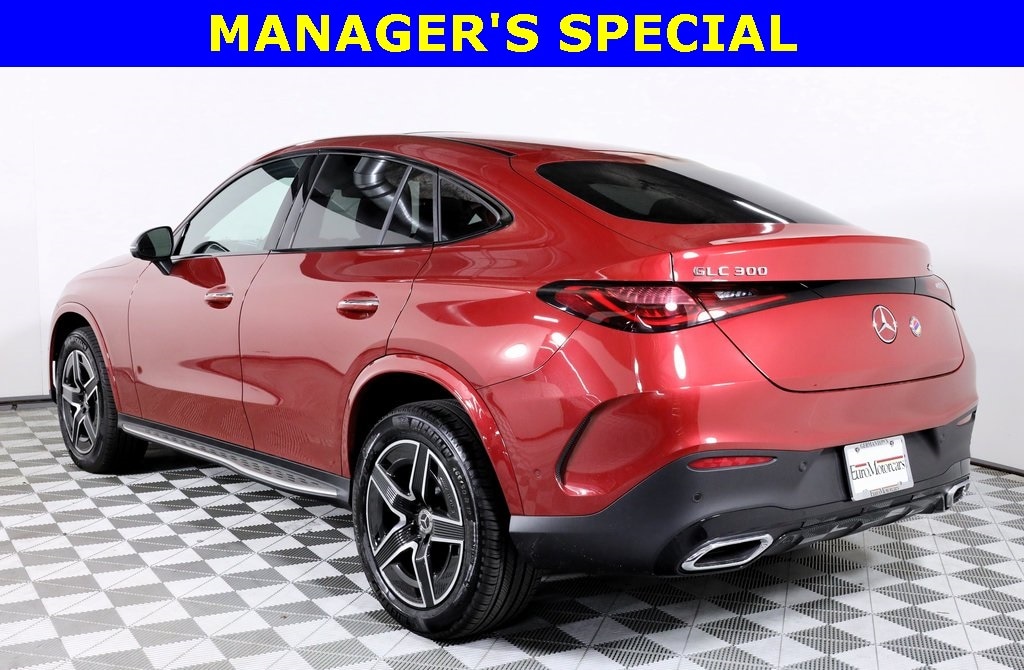 2025 Mercedes-Benz GLC GLC 300 Coupe 4MATIC® MANAGER'S SPECIAL!, Lease Available, 1.40% SPECIAL FINANCING, Surround View Camera, Illuminated Door Sills, 11.9" Center Touchscreen Display, 16-Way Power Front Seats w/Memory & Lumbar, Alloy wheels, AMG® Line, AMG® Line Body Styling, AMG® Line Exterior, AMG® Line Floor Mats, AMG® Line Interior, Animated LED Logo Projector, Apple CarPlay®/Android Auto®, Black Fabric Headliner, Bumpers: body-color, Flat-Bottom Multifunction Sport Steering Wheel, Heated door mirrors, Heated Front Bucket Seats, High-Gloss Black Elements, Navigation system: MB Navigation, Night Package, Perforated Brake Discs, Piano Black Lacquer Center Console, Power door mirrors, Power passenger seat, Split folding rear seat, Wheels: 8J x 19" Fr & 9J x 19" Rr AMG® 5-Spoke. MANUFAKTUR Patagonia Red Metallic 4MATIC®