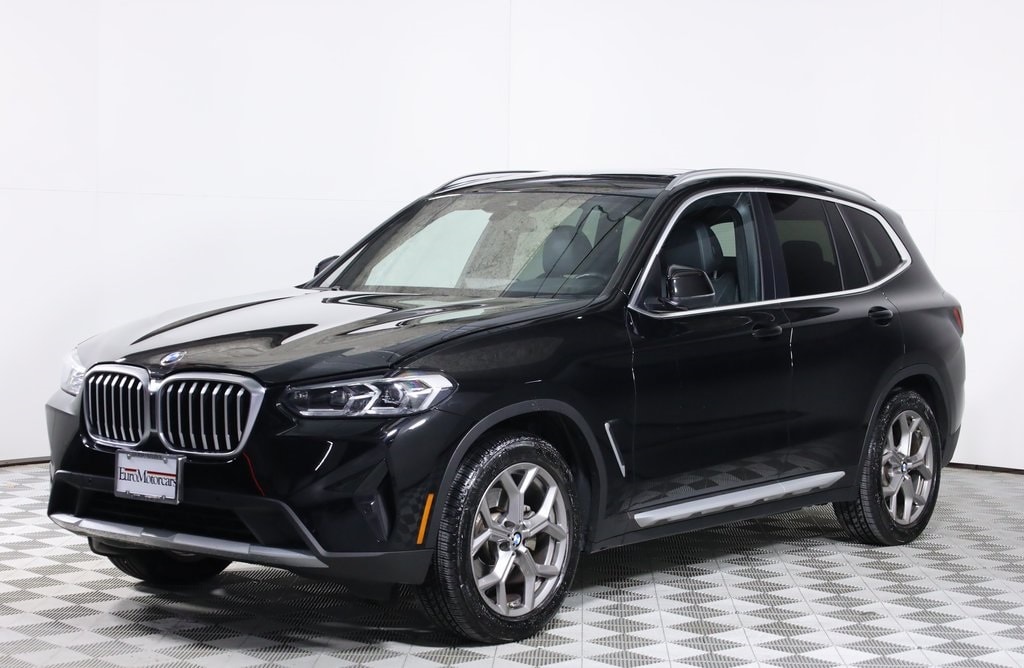 2022 BMW X3 xDrive30i 8-Speed Automatic Sport, Alloy wheels, Apple CarPlay & Android Auto Compatibility, Auto-dimming door mirrors, Auto-dimming Rear-View mirror, Bumpers: body-color, Connected Package Pro, Convenience Package w/ZPA, Exterior Parking Camera Rear, Heated Front Seats, Heated Steering Wheel, Lumbar Support, Navigation System, Panoramic Moonroof (ZPA), Power door mirrors, Power Front Seats, Power Liftgate, Power passenger seat, Rear Manual Side Window Shades, Remote Engine Start, Split folding rear seat, Trailer Hitch, Wheels: 19" x 7.5" Y-Spoke Ferric Grey (Style 693). Jet Black AWD
