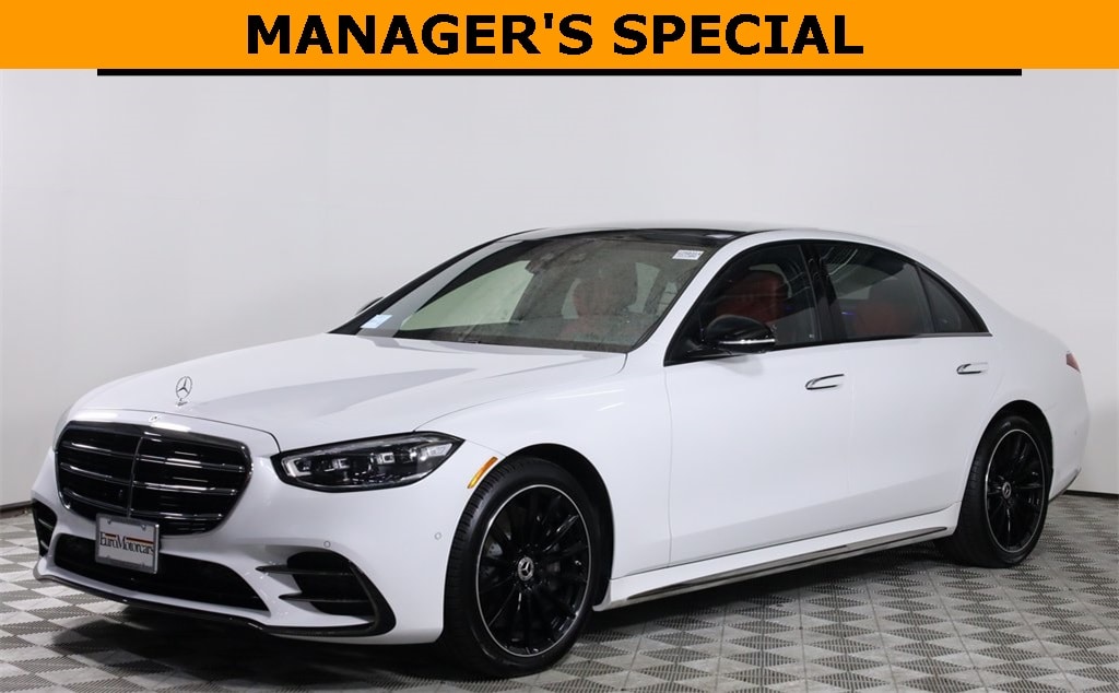 2025 Mercedes-Benz S-Class S 580 4MATIC® Lease Available, 4.0L V8, 4MATIC®, Carmine Red/Black w/Exclusive Nappa Leather Upholstery, Alloy wheels, AMG® Floor Mats, AMG® Line Exterior, AMG® Line Package, Black Microfiber Headliner, Bumpers: body-color, Exterior Parking Camera Rear, Front Energizing Package, Heated Front Armrests, Heated Rear Armrests, Heated Steering Wheel, Navigation System, Night Package, Panorama Sunroof, Power Rear Seats, Rear Memory Seats, Rear Seat Heating, Sport Package Code, Ventilated Rear Seats, Warmth & Comfort Package, Wheels: 20" AMG® Multispoke. MANUFAKTUR Moonlight White Metallic 4MATIC®