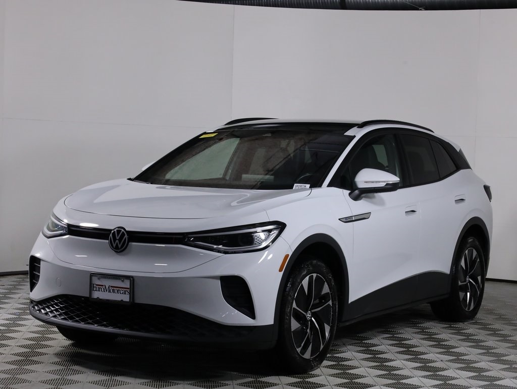 2021 Volkswagen ID.4 Pro S Alloy wheels, Bumpers: body-color, Exterior Parking Camera Rear, Heated door mirrors, Heated Front Seats, Navigation System, Power door mirrors, Power Liftgate, Power passenger seat, Radio: Discover Pro Max w/12" Touchscreen Nav, Split folding rear seat, Wheels: 19" 5-Spoke 2-Tone Machined Alloy. Glacier White Metallic/Black Roof AWD